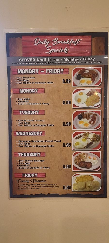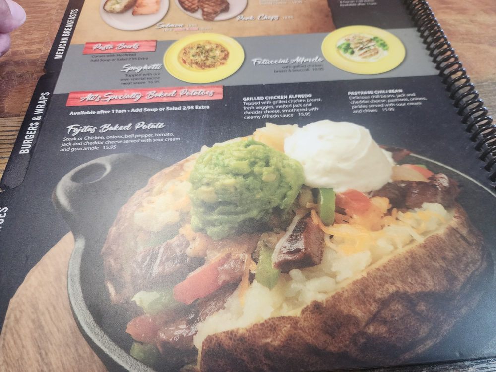 Served with gravy. served with vegetables and hot bread. choice of one item french fries onion rings mexican rice. mashed potatoes and gravy after am baked potato with butter and sour cream after pm.